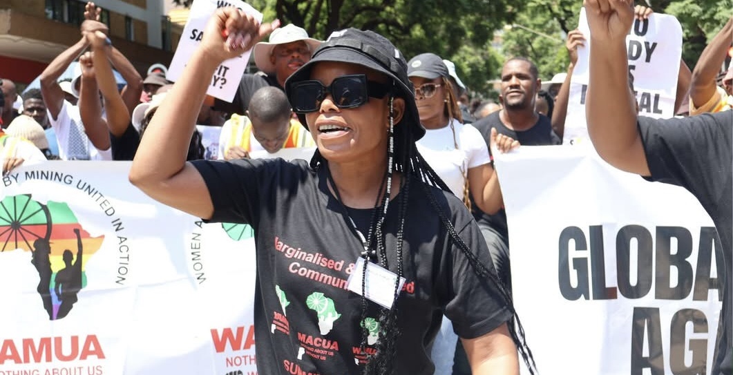 The Mining Affected Communities United in Action (MACUA), with its organisations, WAMUA and youth wing-YAMUA, are protesting at the Anglo American offices in Rosebank under the banner: “No TNC Exit Without Community Justice.”