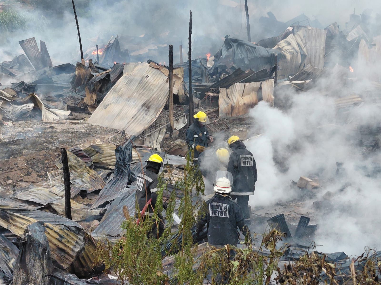 A fire destroyed more than 100 informal homes, leaving nearly 200 people displaced, at the Quarry West Informal Settlement, located in M19 near Reservoir Hills, on Thursday.