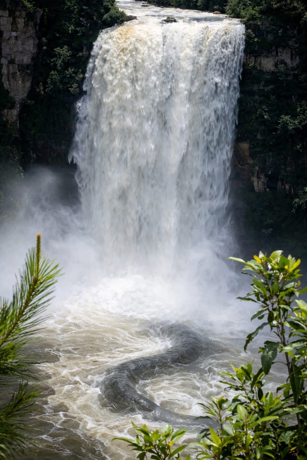 While “Howie” is a protected part of our natural heritage, we urge visitors to maintain a respectful distance from the viewing decks. If you see a 30-foot neck rising through the mist, please do not attempt to feed him goats, chickens, or tourists.