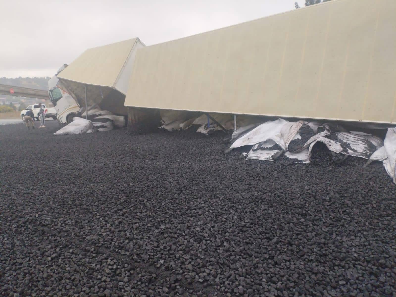 Picture: An overturned truck on the N12 East on Monday, JMPD.
