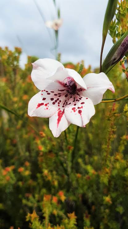 Picture from Sean Privett: Underground Fynbos after fire: Liparia splendens- the mountain dahlia flowering just a few weeks after the fire and the Cyrtanthus leucanthus – witbergpypie – an endangered species that flowered a few weeks after the fire.